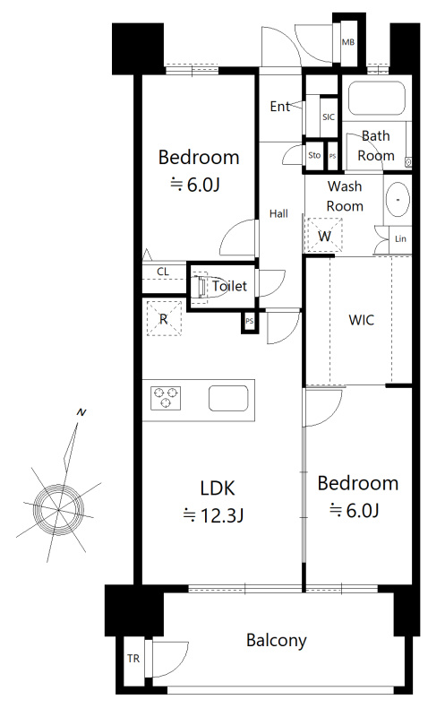間取り/専有面積(㎡)(坪)2LDK / 61.95㎡/18.73坪