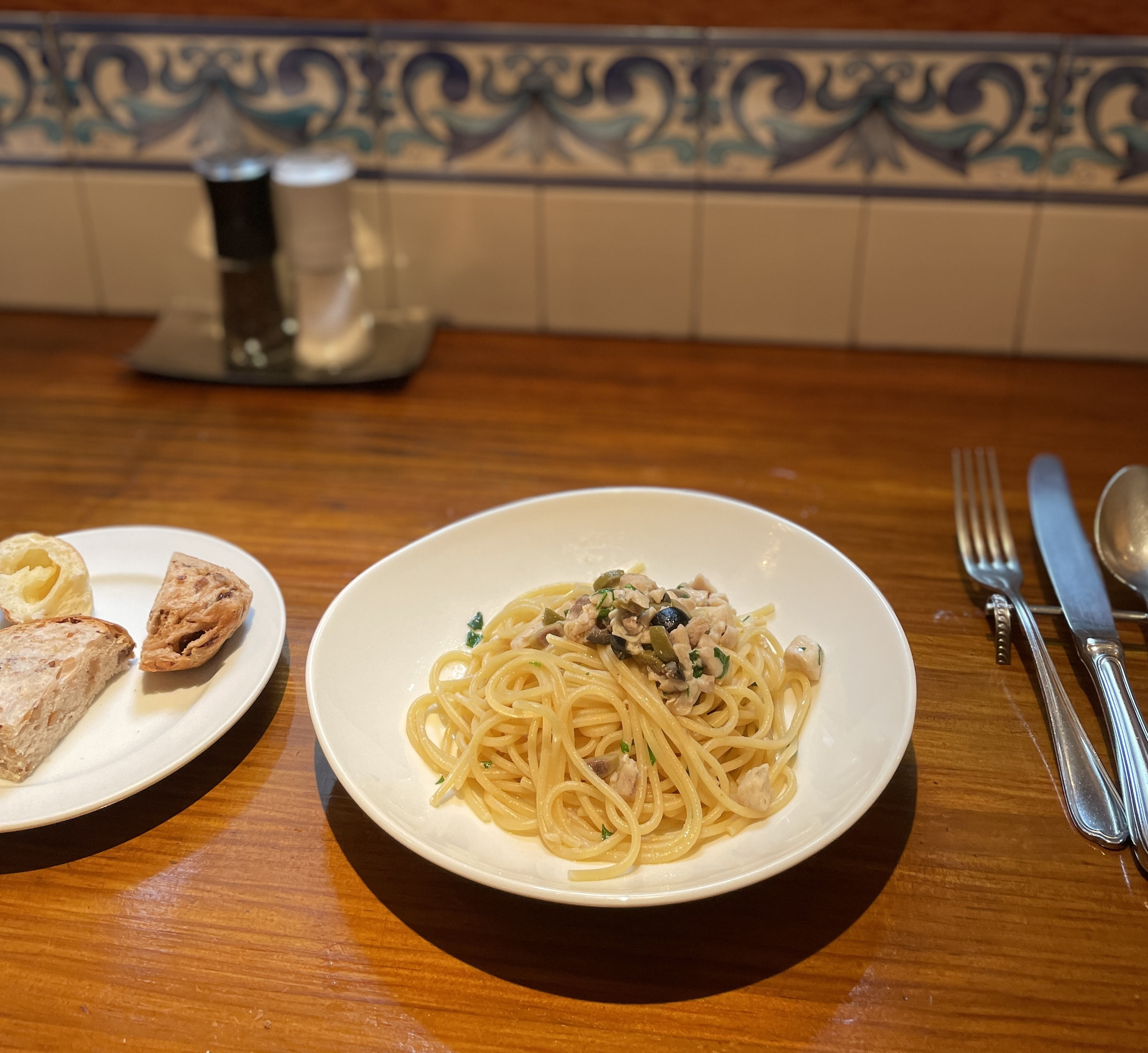 1階にはパン屋デューカディカマストラがあり、こちらのパンを少しずついただくことができます。なんとパンは食べ放題!ついつい食べ過ぎてしまうのが唯一の難点ですwww(^_^;)