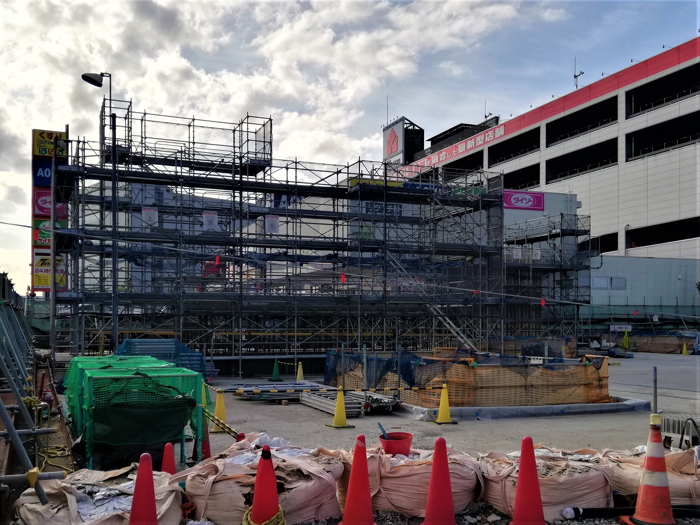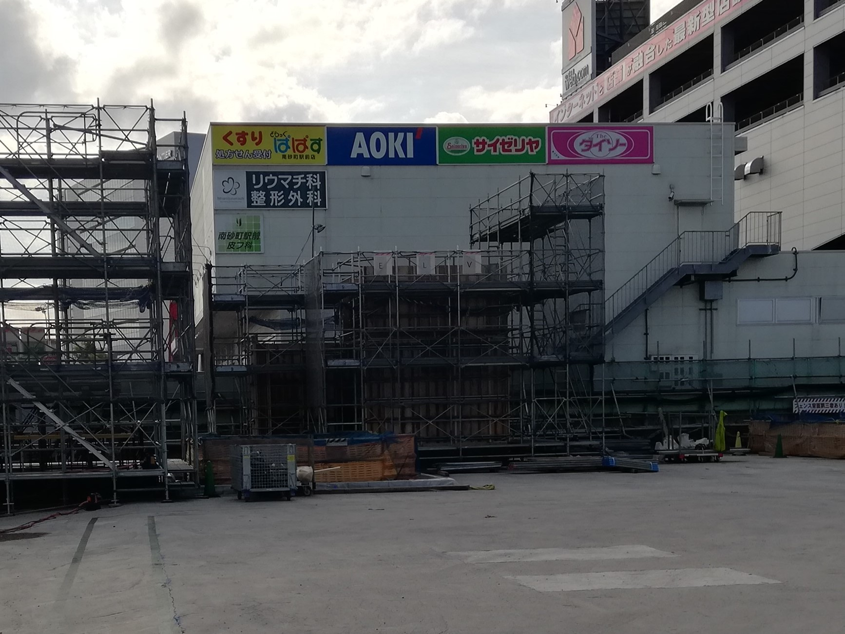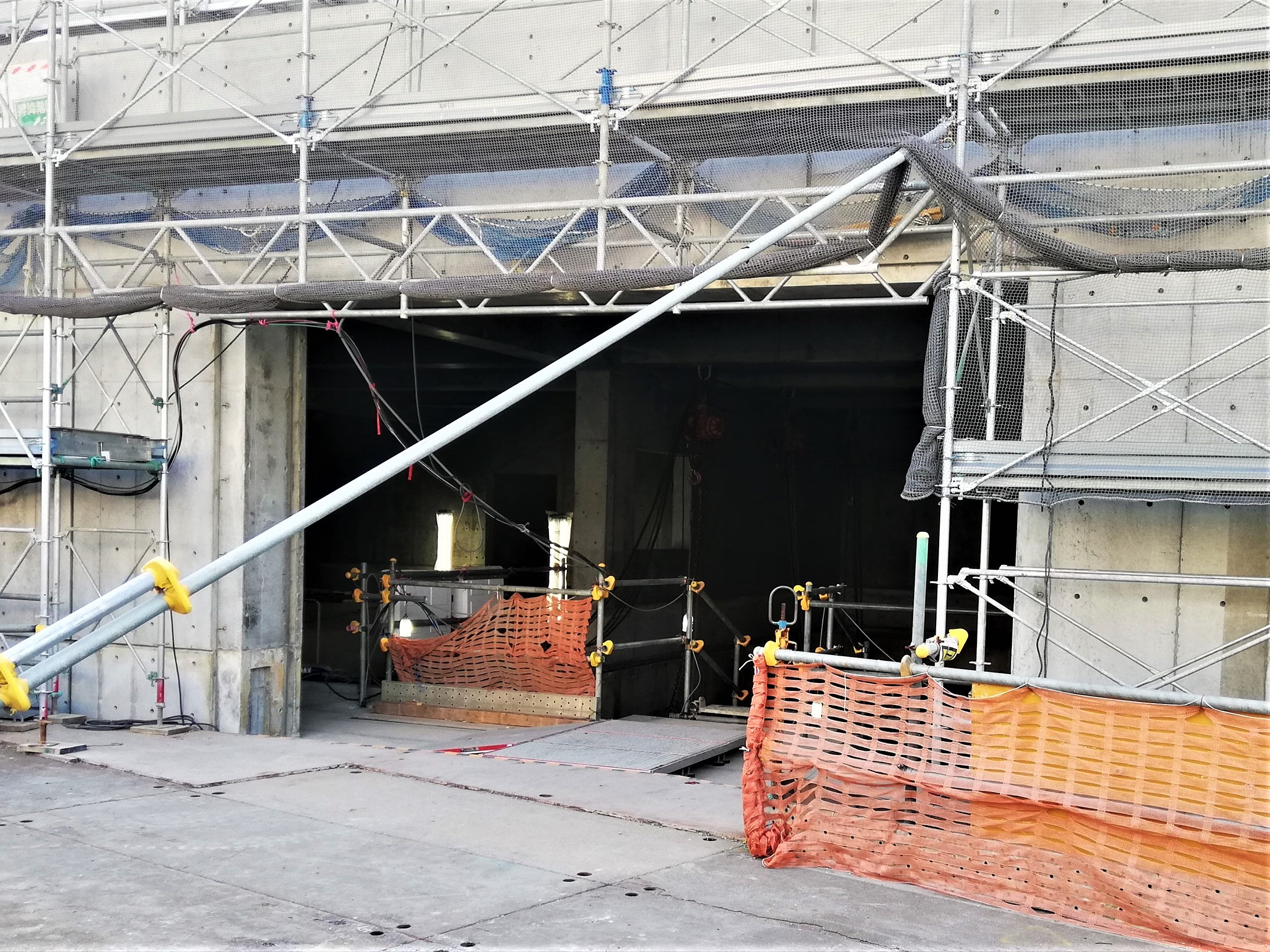 駅舎棟北側 → 1階の支保工が無くなり、内部の状況が見えています。