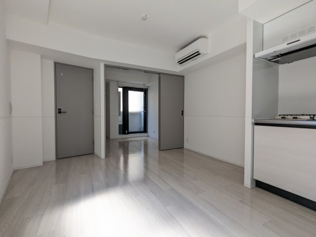 室内洗濯機置場、フローリング、バルコニー、ガスコンロ、コンロ2口以上、システムキッチン、バス・トイレ別、浴室乾燥機、洗面台、独立洗面台、エアコン、シューズボックス
